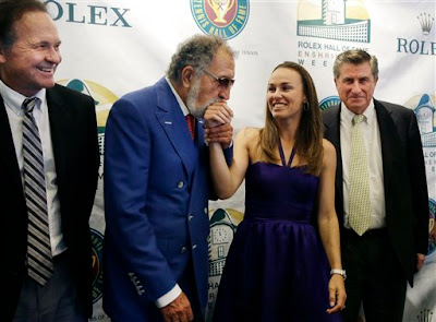 Martina Hingis was the head of the class at Saturday's induction into the International Tennis Hall of Fame in Newport, R.I., although charges of infidelity against the newlywed Swiss -- -- with not one, but two men --would have you believing she was the next Chris Evert!